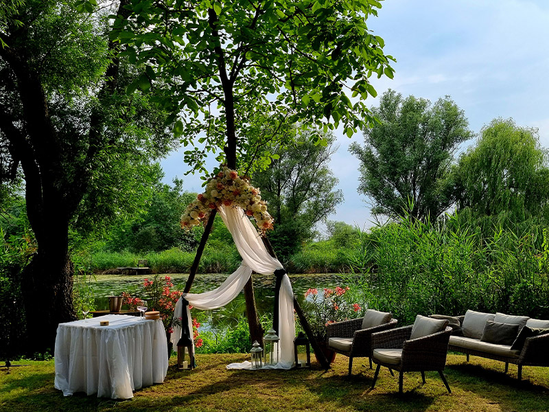 Im Achilles Park erwartet Sie eine traumhafte Hochzeitskulisse direkt am See. Umgeben von Natur und sanfter Ruhe bietet dieser Ort alles, was man sich für eine romantische Feier im Freien wünscht.